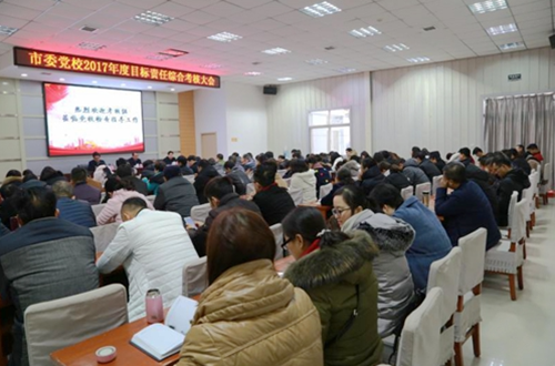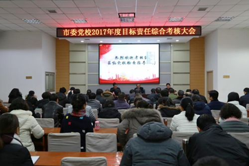 1月15日上午,市委党校召开2017年度目标责任综合考核大会。常务副校长问康美主持会议,市人社局副局长、市公务员局局长梁建军,市委非公和社会组织党建工委副书记孟勋涛等11名同志出席会议。