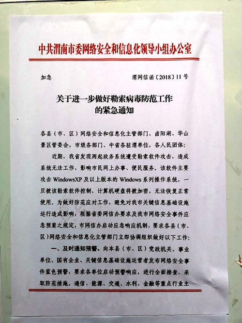 关于进一步做好勒索病毒防范工作的紧急通知