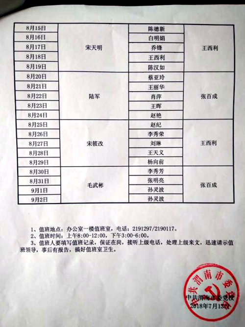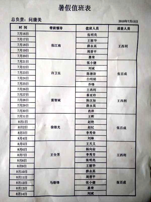 暑假值班表