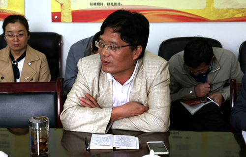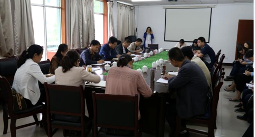 马涛介绍了我校帮扶蒲城县苏坊镇寨子村各贫困户的基本情况,并交流了自己的扶贫工作体会。