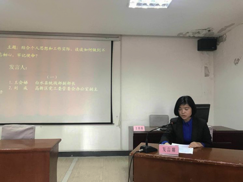 2018年4月10日下午,渭南市委党校春季中青班在教研楼四楼热烈开展学员论坛,此次论坛围绕“不忘初心 牢记使命”这一主题展开,教研处副处长宋筱改教授主持此次论坛并点评。