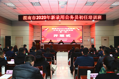 12月14日上午,渭南市2020年新录用公务员初任培训班(第一期)开班式在市委党校(行政学院)报告厅举行,197名新录用公务员参加了开班仪式。渭南市考核办副主任张军伟讲话,渭南市委党校(行政学院)副校长许卫东致辞,渭南市委组织部公务员二科科长高伟强主持。