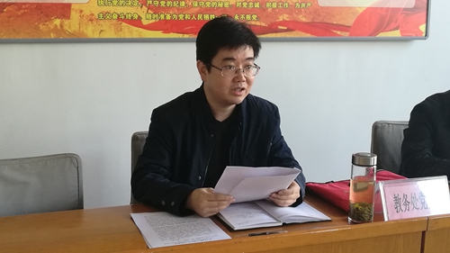 最后,毛武彬副校长结合教务处的实际,就如何深入贯彻落实党的十九大精神,化精神为动力,提出三点要求。一是要求在思想上统一到党的十九大精神上来。要认真学习、深刻认识、准确把握党的十九大精神的政治意义、实践意义、理论意义、历史意义,带着感情学、带着问题学、带着责任学,迅速把思想认识统一到党的十九大精神上来。二是要求在作风上统一到“十九大”精神上来。要以深入学习党的十九大精神为契机,努力提高自身的政治素质、理论素质和综合业务素质,充分发挥党支部核心堡垒和党员模范带头作用,努力打造一支政治合格,作风过硬,纪律严明,业务精通的教务铁军。三是要求在行动上统一到党的十九大精神上来。努力营造创新、务实、高效、有为的工作氛围,在工作上着力推动创新发展,努力推动全市干部培训事业又快又好的发展。