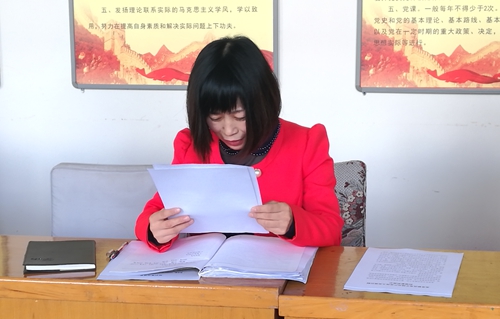 二、根据支部学习贯彻十九大精神的“四步工作法”, 在“一看、二读、三思”的基础,支部支部书记赵纪、组织委员张明亮、宣传委员王丽华以及赵燕、刘琳、王天义、薛永英七名同志分别领学专家解读十九大报告的政治方面、生态文明方面、党建方面、党章修改的历史、本次党章修改部分和重大意义以及习近平会见中外记者发表的重要讲话。