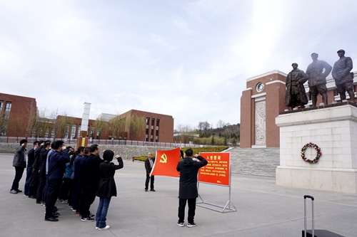 参观纪念馆,聆听革命史。在“陕甘边革命根据地照金纪念馆”前的广场上,“刘志丹、谢子长、习仲勋”三位革命领导人的塑像巍然屹立、迎风远眺,让人肃然起敬。全体党员面对鲜艳的党旗,举起右拳,集体宣誓,铮铮誓言在巍巍青山之间久久回荡。在工作人员的引导和讲解下,全体学员有序进入纪念馆参观,在一幅幅生动的画卷下、一个个珍贵的遗物前、用心感受那段波澜壮阔的革命历史,汲取着坚持真理、追求光明的革命精神。