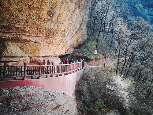 攀登薛家寨,重走红军路。薛家寨是刘志丹、谢子长、习仲勋等老一辈无产阶级革命家率领党员群众修筑的红军驻地,也是当年陕甘边特委的驻地。来到山下举头仰望,巨岩横空,壁立千尺,地势险峻。薛家寨旧址山下,铜川市委党校年轻讲师用大量详实的资料,声情并茂、惟妙惟肖地讲述了陕甘边刘志丹、谢子长、习仲勋等老一辈无产阶级革命家的光辉事迹。革命先辈们坚定不移的革命意志、忘我奋斗的革命精神、无私无畏的革命气概,深深地感染了每一位学员。聆听完毕,全体学员沿着新砌的石阶攀援而上,山高坡陡,峰回路转。时间不长,众多学员双腿就像灌满了铅,汗水很快湿透了衣背。教员鼓励大家发扬革命精神,开展攀登竞赛,最终全体人员顺利登顶。沿线走进红军驻扎的四个天然岩洞,高悬绝壁,下临绝崖,洞内冷风袭人,碎石遍地,一些地方只有伏下身子才能勉强通过。可就在这样的艰苦条件下,红军依然修建堞墙、战壕、哨卡,创建了被服厂、军械厂、红军医院,开展了卓有成效的斗争。参观学员惊叹不已,相形见绌,纷纷剖析自身畏难怕苦的问题。