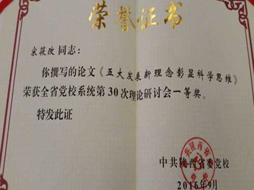 全省党校系统第30次理论研讨会于2016年9月19日在西安召开,会议全面贯彻党的十八届五中全会精神,扎实践行习近平总书记对陕西提出的“追赶超越”定位和“五个扎实”要求。省委党校常务副校长蔡钊利作了主题报告,省政府研究室主任杨三省作了《陕西如何实现追赶超越》的学术报告,十三位获奖作者在大会上作了交流发言(我校宋筱改、王茹老师作了交流发言),省委党校副校长宦洁作了总结讲话。