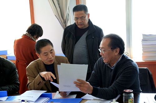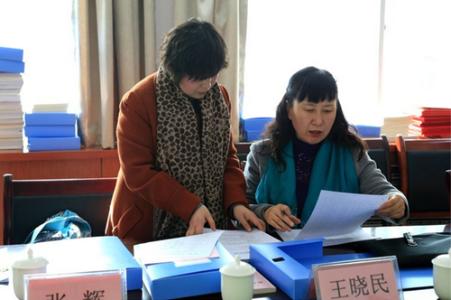 评估组副组长、商洛市委党校副校长王晓民查看评估资料