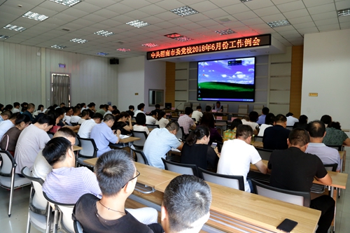 6月11日上午,市委党校召开六月份工作例会,副校长毛武彬主持会议,全体教职工参加会议。