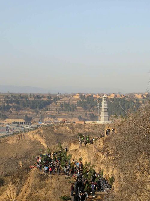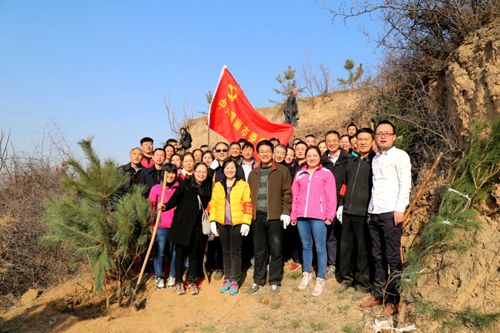 早春的秦东大地,万物复苏,新绿绽放。昨日早上,我校教职工义务植树活动在临渭区闫村镇西王村零河东岸桃花源东坡展开。