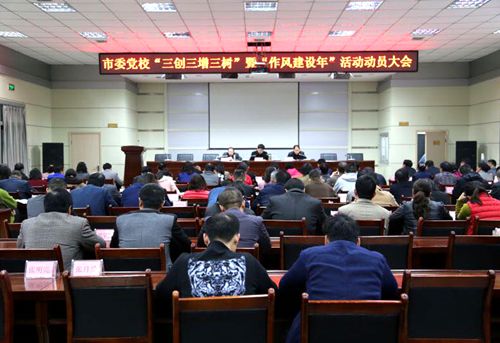 3月27日上午,市委党校召开“三创三增三树”暨“作风建设年”活动动员大会,副校长王天平主持,全体教职工参会。