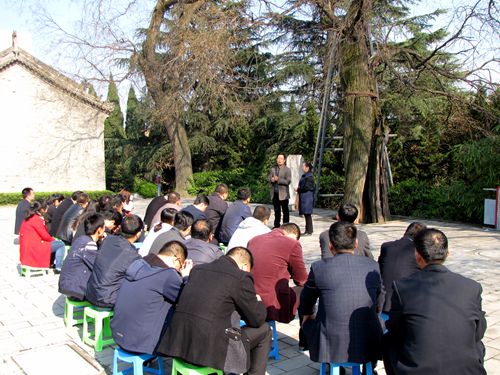 春日阳光和煦,微风习习。学员们怀着无比崇敬的心情,瞻仰了烈士纪念碑,默哀缅怀革命先烈并行三鞠躬礼。随后参观了渭华起义纪念馆和革命遗址,对渭华起义的时代背景和具体经过有了进一步了解。接着,学员们在古槐树下座谈,回顾历史,交流心得体会。大家纷纷表示,通过课堂教学和现场教学的结合,心灵上受启迪,视觉上受震撼,工作上受鞭策,收获颇丰。