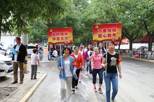 陪考家长王女士说:“因担心孩子发挥不好,我心情很是紧张,在考点外心神不定的坐立不安,还是党校的党员志愿者主动邀请我到党校大厅休息,一边递水一边陪我聊天宽心,这些人真是好人,我就不知道该怎么感谢他们。”