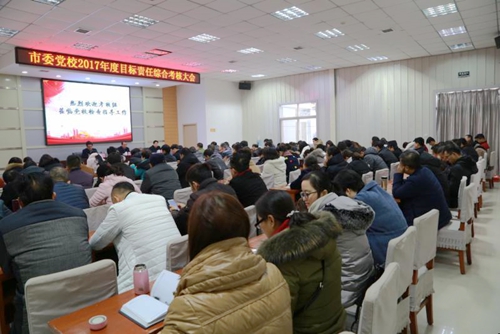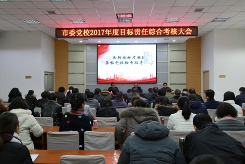 1月15日上午,市委党校召开2017年度目标责任综合考核大会。常务副校长问康美主持会议,市人社局副局长、市公务员局局长梁建军,市委非公和社会组织党建工委副书记孟勋涛等11名同志出席会议。
