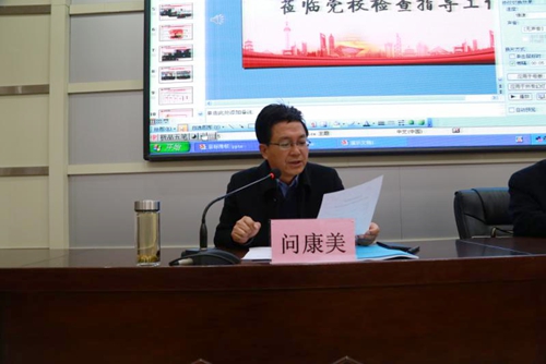 问康美同志对市委党校2017年度目标任务完成情况做了对标报告,从干部教育培训工作、教学管理工作、教学科研水平、精准扶贫工作、评估工作、创建工作、思想作风建设、领导班子和队伍建设、机关党的建设和党风廉政建设等方面向考核组做了详尽汇报。