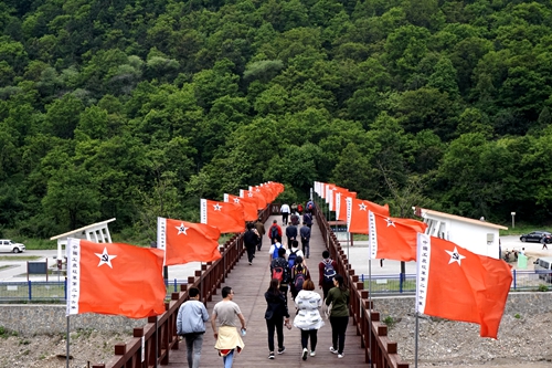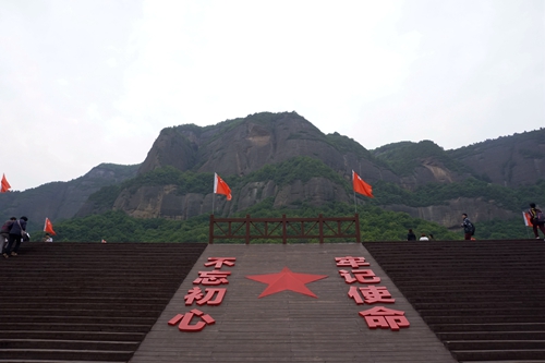 随后,学员们到薛家寨革命旧址,重走红军路,体验恶劣环境下中国工农红军翻越天险、安营扎寨、浴血奋战的革命历程。虽然薛家寨地形险峻,四面环山,山上林木茂密,有些地方从远处看去似乎无路可走,但是大家没有一人退缩,相互鼓励,相互扶持,以顽强的毅力和坚忍不拔的精神走完全程,在山巅、洞寨中触摸历史,指点江山。