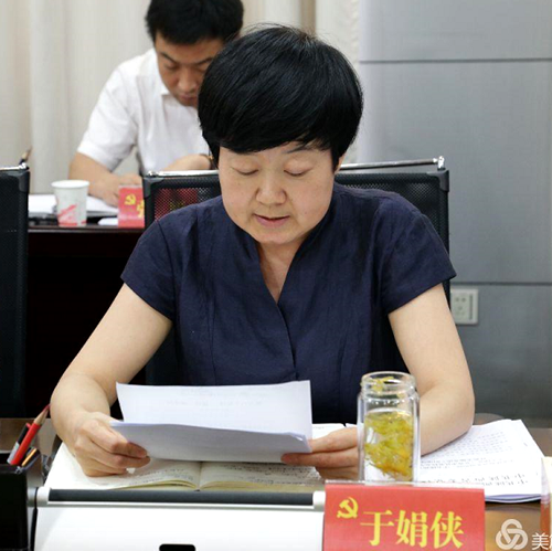合阳县委副书记于娟侠同志汇报贯彻落实《全省市县党校办学质量评估实施办法》情况及省市评估检查后整改情况。