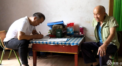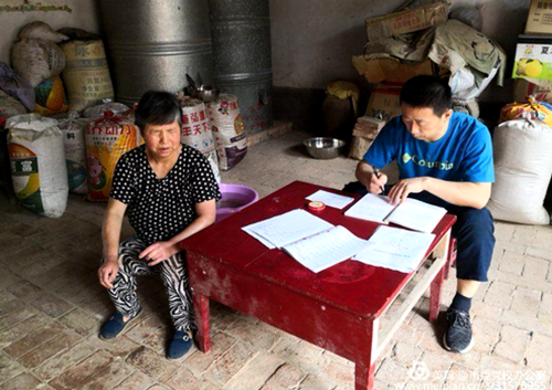 机关党委书记陆军同志入户填写扶贫工作纪实,了解贫困户近期生活情况。