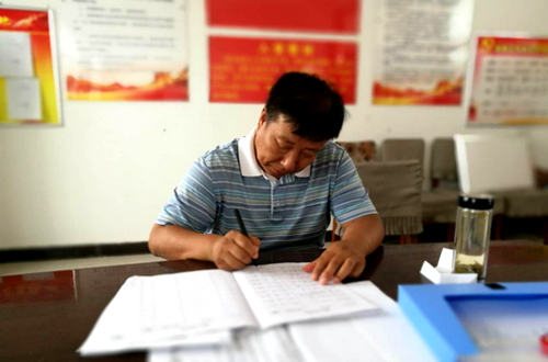 总务处物业办主任张小健认真完善扶贫资料。
