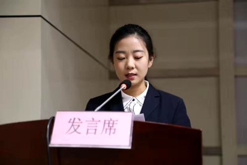 会上学员代表任艺莹发言表态:提高站位,牢记使命,树立四个意识;勤学善思,谦虚谨慎;遵纪守法,团结奋进。