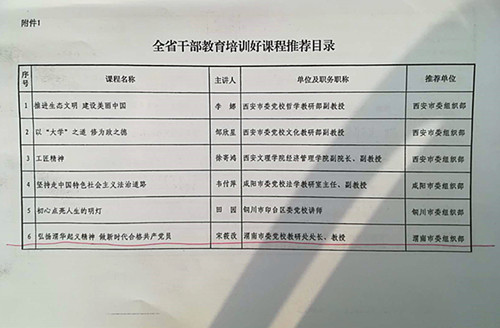 近日,中共陕西省委组织部印发《关于印发全省干部培训好课程好教材推荐目录的通知》(陕组通字〔2018〕128号),由我校常务副校长(院长)问康美主编的教材《新常态 大逻辑--学习习近平总书记系列重要讲话》成功入选全省干部教育好教材推荐目录,由教研处处长宋筱改教授主讲的《弘扬渭华起义精神 做新时代合格共产党员》课程成功入选全省干部教育好课程推荐目录。我校(院)是此次评选活动中全省唯一双丰收的市级党校。