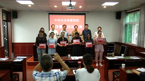 本次活动邀请渭南市委党校校际联络处处长王全芳、渭南市委党校教授魏刚、县委正科级组织员、组织部干部二组组长朱红梅、县委宣传部副部长王云龙、县委宣传部纪检组长闫刘伟和县委党校书记贾随建担任评委,并对获奖教师颁奖。