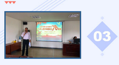 第一党小组用激情澎湃的语言深情地诉说着对祖国母亲的热爱和感恩之情,祖国是我们的母亲,我们为你骄傲,我们为你自豪。