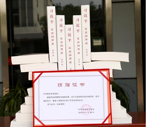 2025年6月20日上午10时,由陕西省委党校图书馆馆长孙春丽带队,流通部主任李晶、专业馆员李青、王晓佳、周甜、周裕华等六人组成的专业团队,携近60箱、2000余册涵盖党建理论、党史文献、干部教育等领域的图书,莅临渭南市委党校开展图书捐赠与图书馆调研活动。简洁庄重的赠书仪式在图书馆门前举行,调研组与渭南市委党校相关领导及工作人员在图书楼前合影留念,共同记录这一重要时刻。这份珍贵捐赠,承载着省委党校对基层党校的深切关怀与殷切期望,为渭南市委党校送来“精神食粮”,发展注入新动能。也标志着渭南市委党校图书馆开启发展新篇章,为迈向高质量发展奠定了坚实基础。
